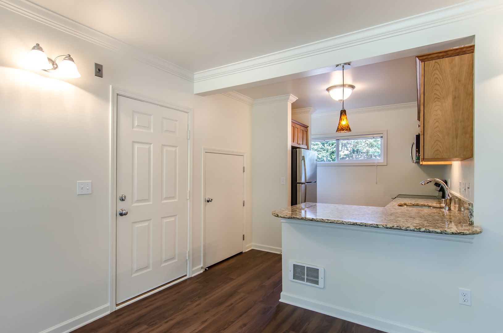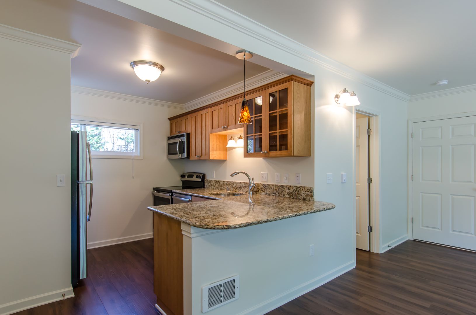 LOCATION! LOCATION! LOCATION! Walk to everything in Downtown Kirkland. This 8 plex apartment is a remodeled corner 1 bed 1 bath unit on the first floor with a large sunny patio overlooking immaculately maintained grounds. Vinyl wood plank flooring throughout main living areas with carpet in the bedroom only. Kitchen features granite counter tops, stainless appliances with self cleaning oven with glass cooktop, microwave, frost free refrigerator with ice maker, dishwasher. Well-maintained coin operated washer and dryer just outside your door- shared with three other units. Reserved off street parking. Sorry, NO PETS OR SMOKING.
